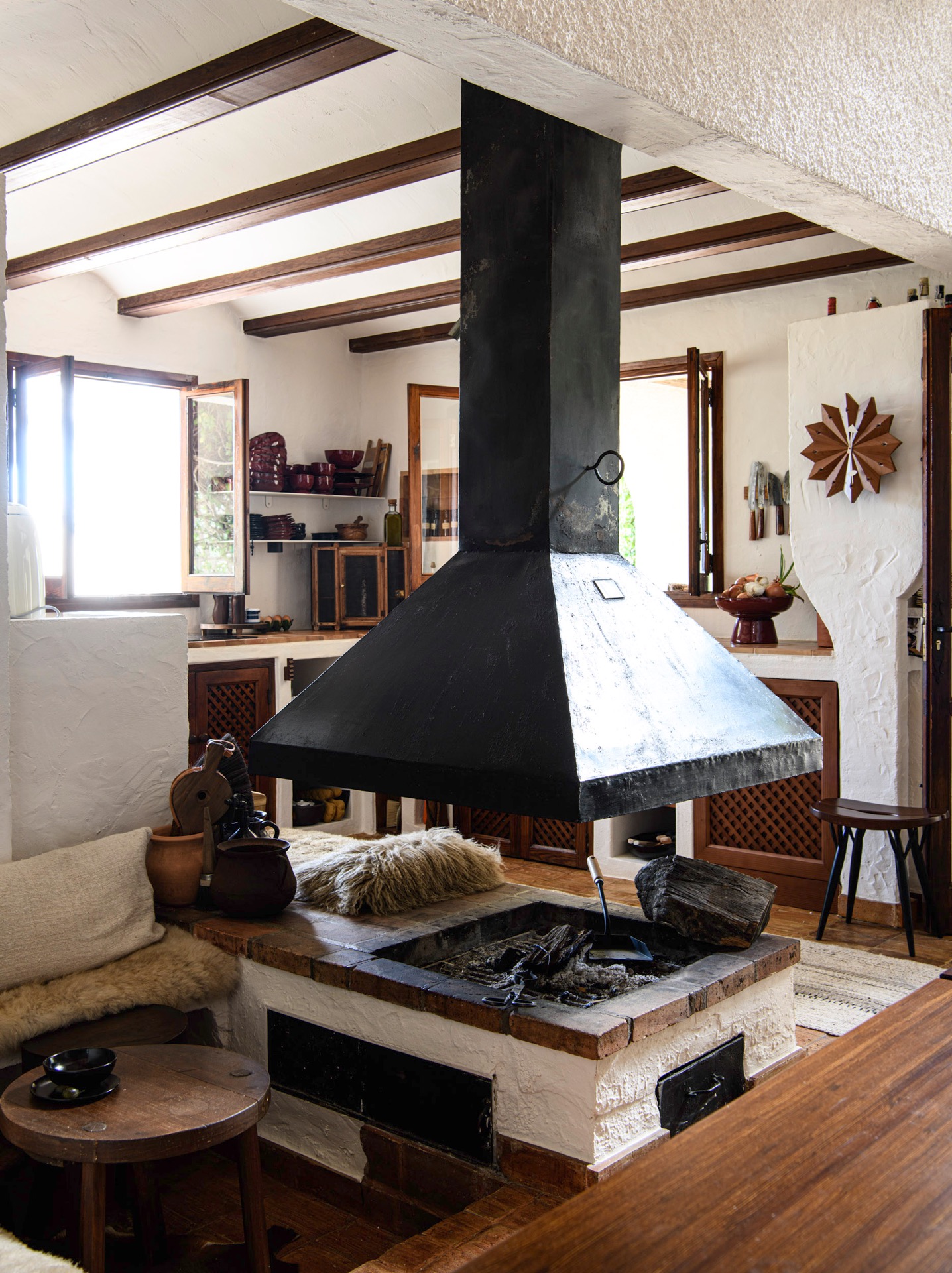 Tweede verdiep: Zithoek met haardvuur en boekenhoek